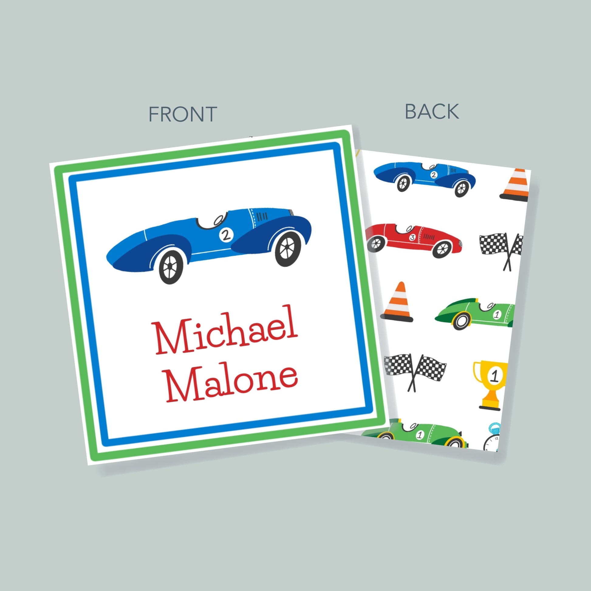 Blue Race Car Gift Tag